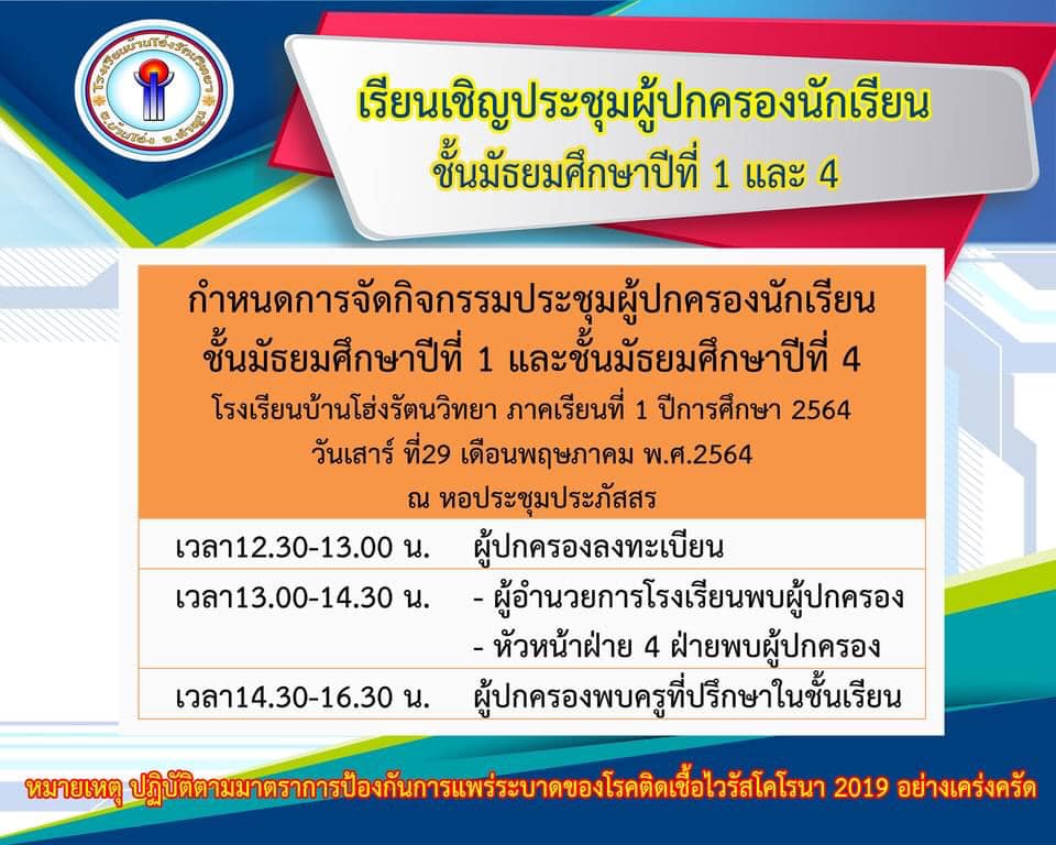 ประชุมผู้ปกครอง ปีการศึกษา 2564 ภาคเรียนที่ 1