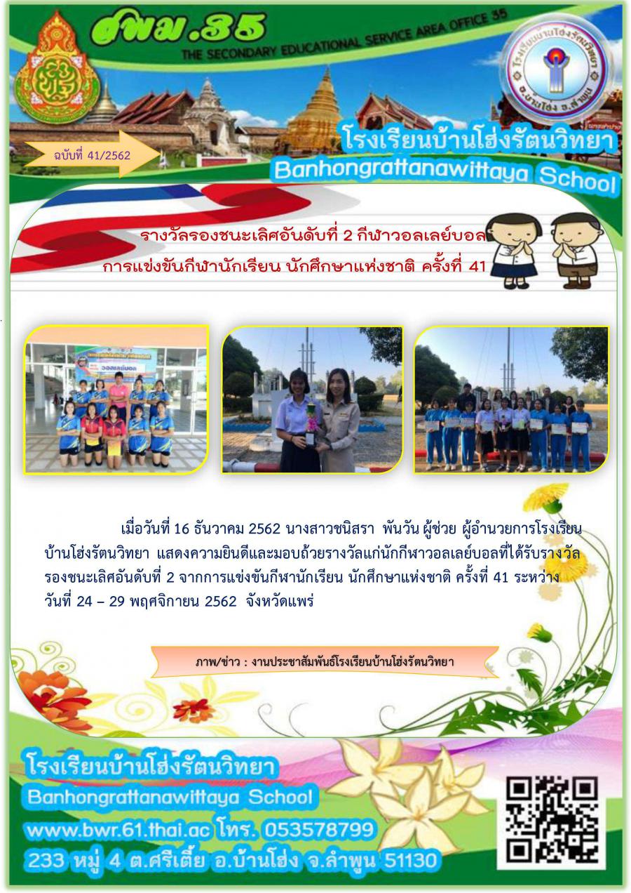 รางวัลรองชนะเลิศอันดับที่ 2 กีฬาวอลเล่ย์บอล