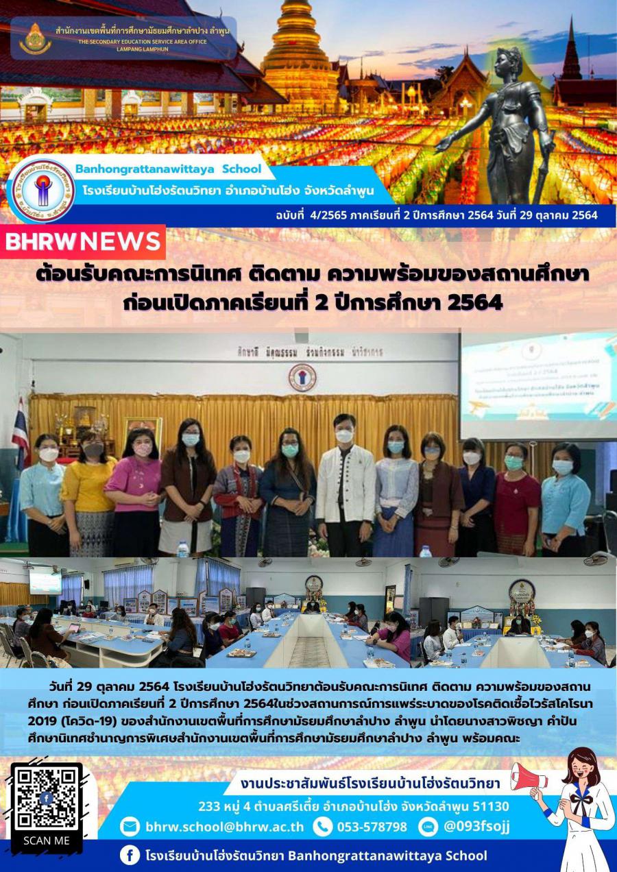 วันที่ 29 ตุลาคม 2564 โรงเรียนบ้านโฮ่งรัตนวิทยาต้อนรับคณะการนิเทศ ติดตาม ความพร้อมของสถานศึกษา ก่อนเปิดภาคเรียนที่ 2 ปีการศึกษา 2564