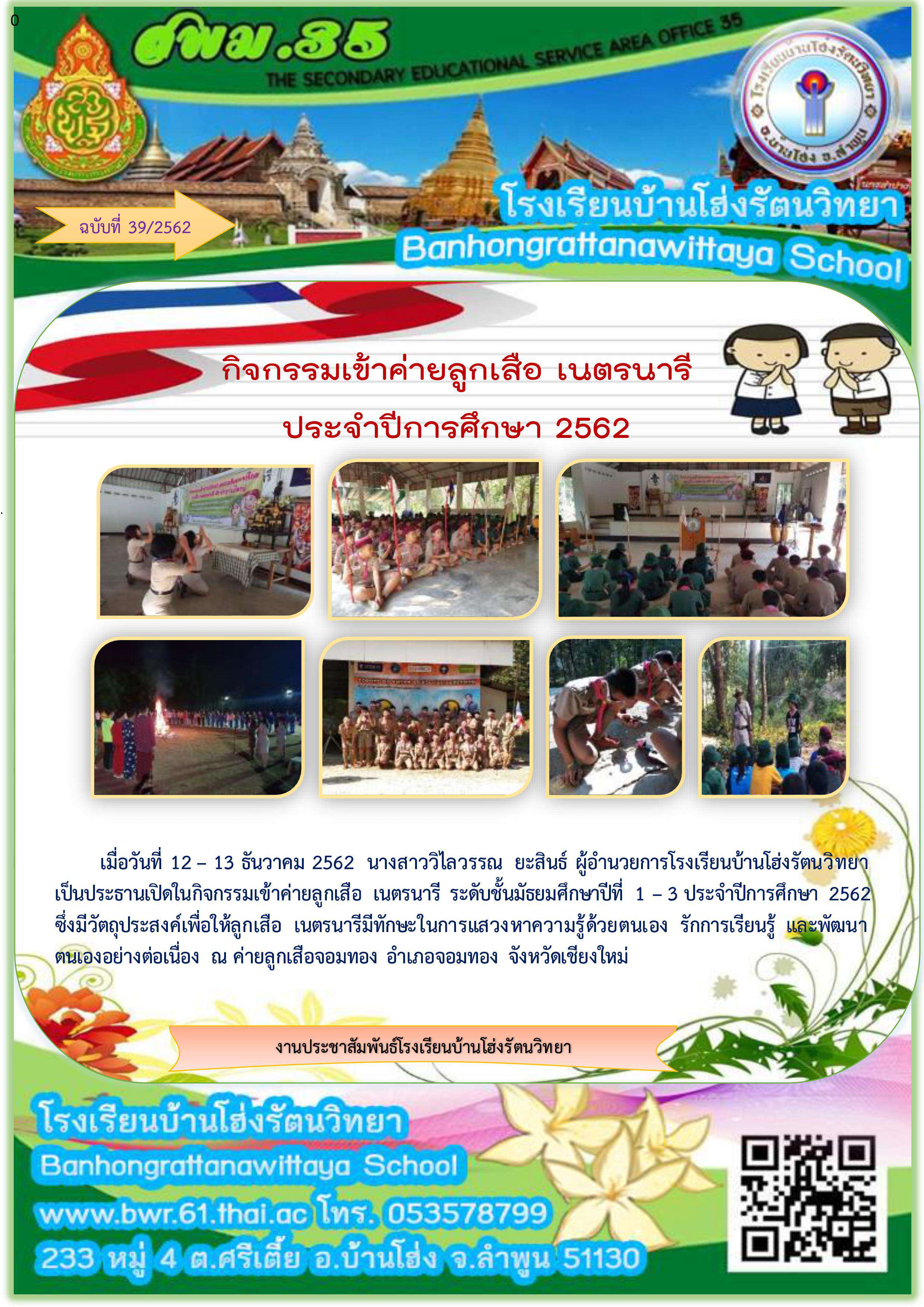 กิจกรรมเข้าค่ายลูกเสือ เนตรนารี ประจำปีการศึกษา 2562