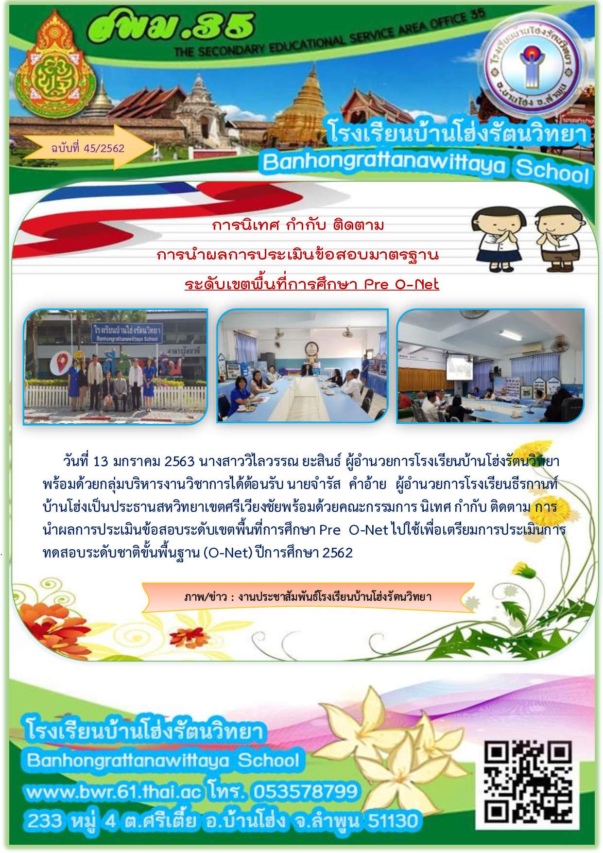 การนิเทศ กำกับ ติดตาม ข้อสอบมาตรฐาน Pre O-Net