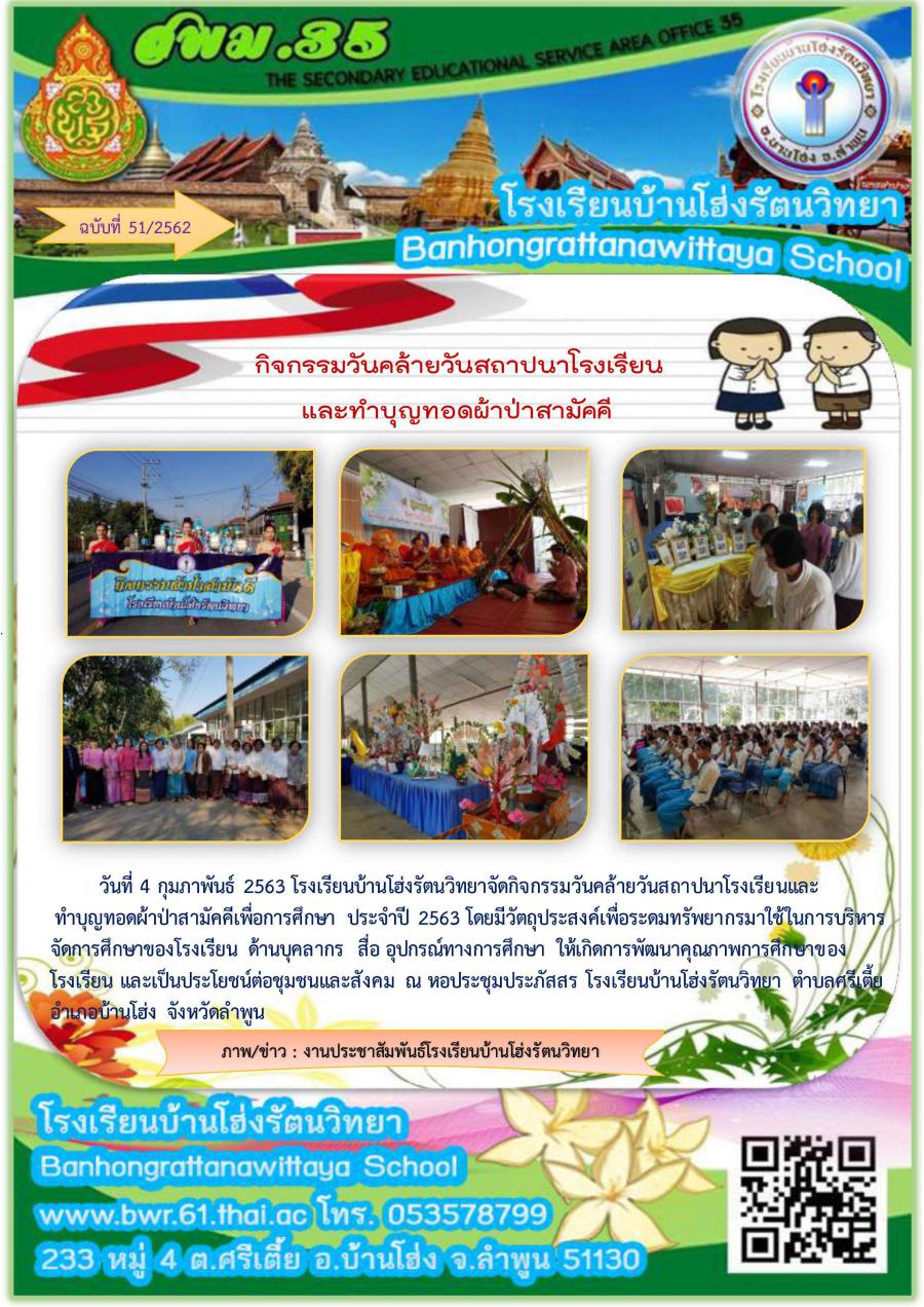 กิจกรรมวันคล้ายวันสถาปนาโรงเรียนและทำบุญทอดผ้าป่าสามัคคี ปี 2563