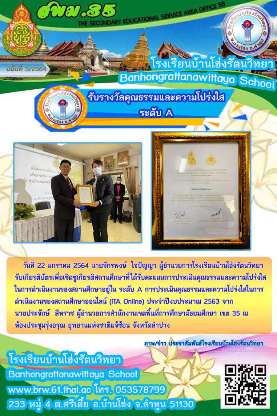 รับรางวัลคุณธรรมและความโปร่งใส ระดับ A