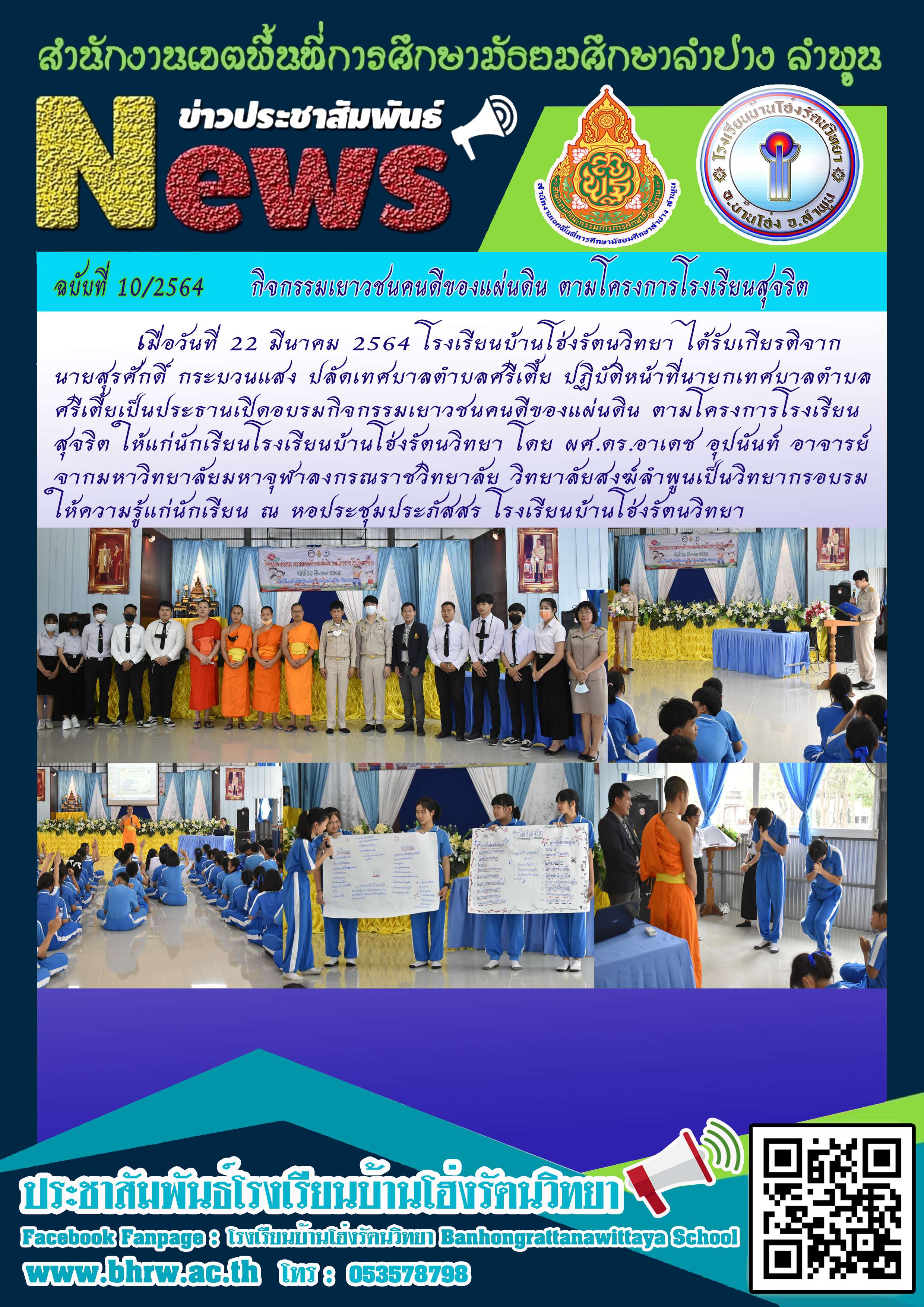 กิจกรรมเยาวชนคนดีของแผ่นดิน ตามโครงการโรงเรียนสุจริต
