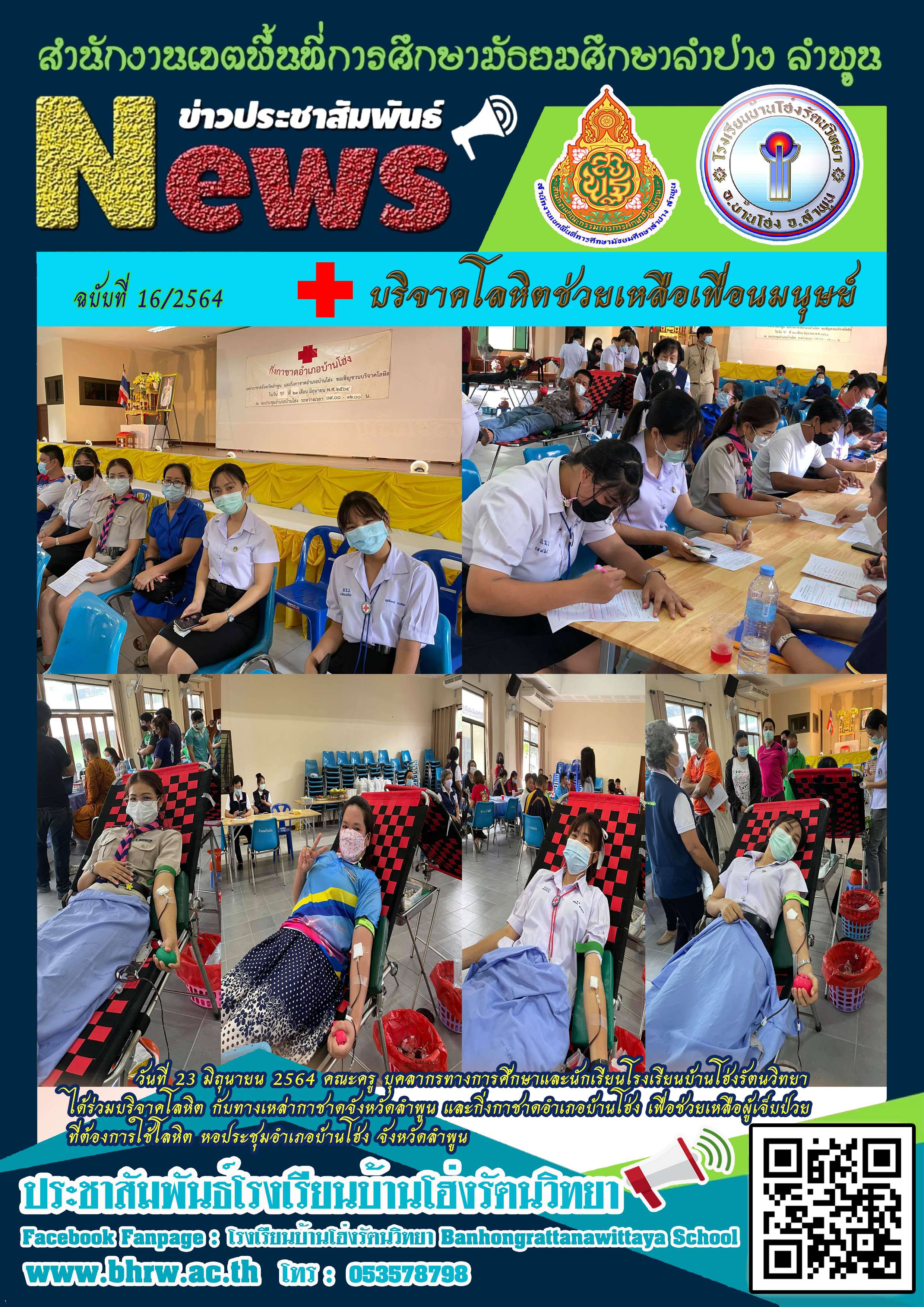 ได้ร่วมบริจาคโลหิต กับทางเหล่ากาชาดจังหวัดลำพูน และกิ่งกาชาดอำเภอบ้านโฮ่ง เพื่อช่วยเหลือผู้เจ็บป่วย