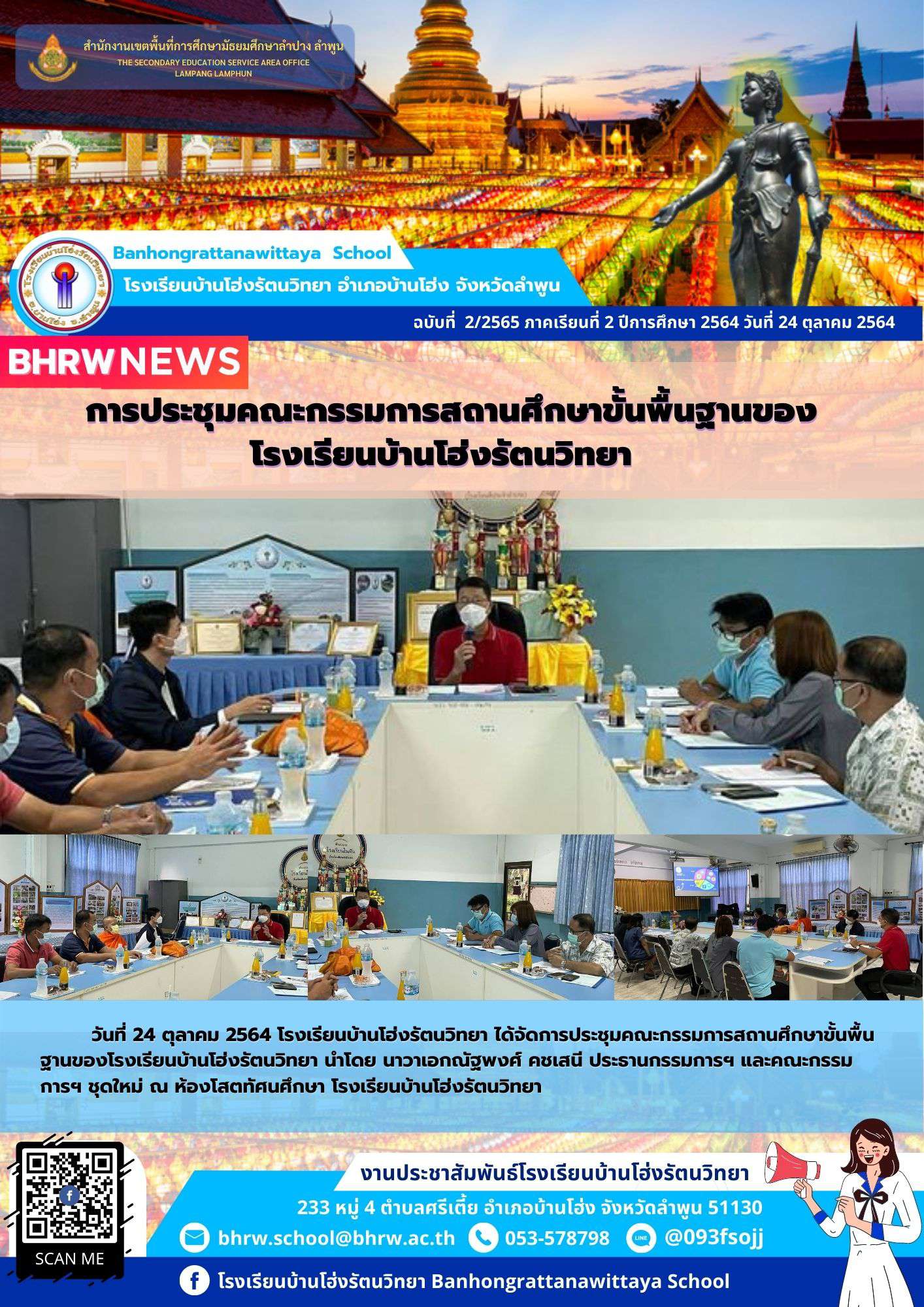 วันที่ 24 ตุลาคม 2564 โรงเรียนบ้านโฮ่งรัตนวิทยา ได้จัดการประชุมคณะกรรมการสถานศึกษาขั้นพื้นฐานของโรงเรียนบ้านโฮ่งรัตนวิทยา นำโดย นาวาเอกณัฐพงศ์ คชเสนี ประธานกรรมการฯ และคณะกรรมการฯ ชุดใหม่ ณ ห้องโสตทัศนศึกษา โรงเรียนบ้านโฮ่งรัตนวิทยา