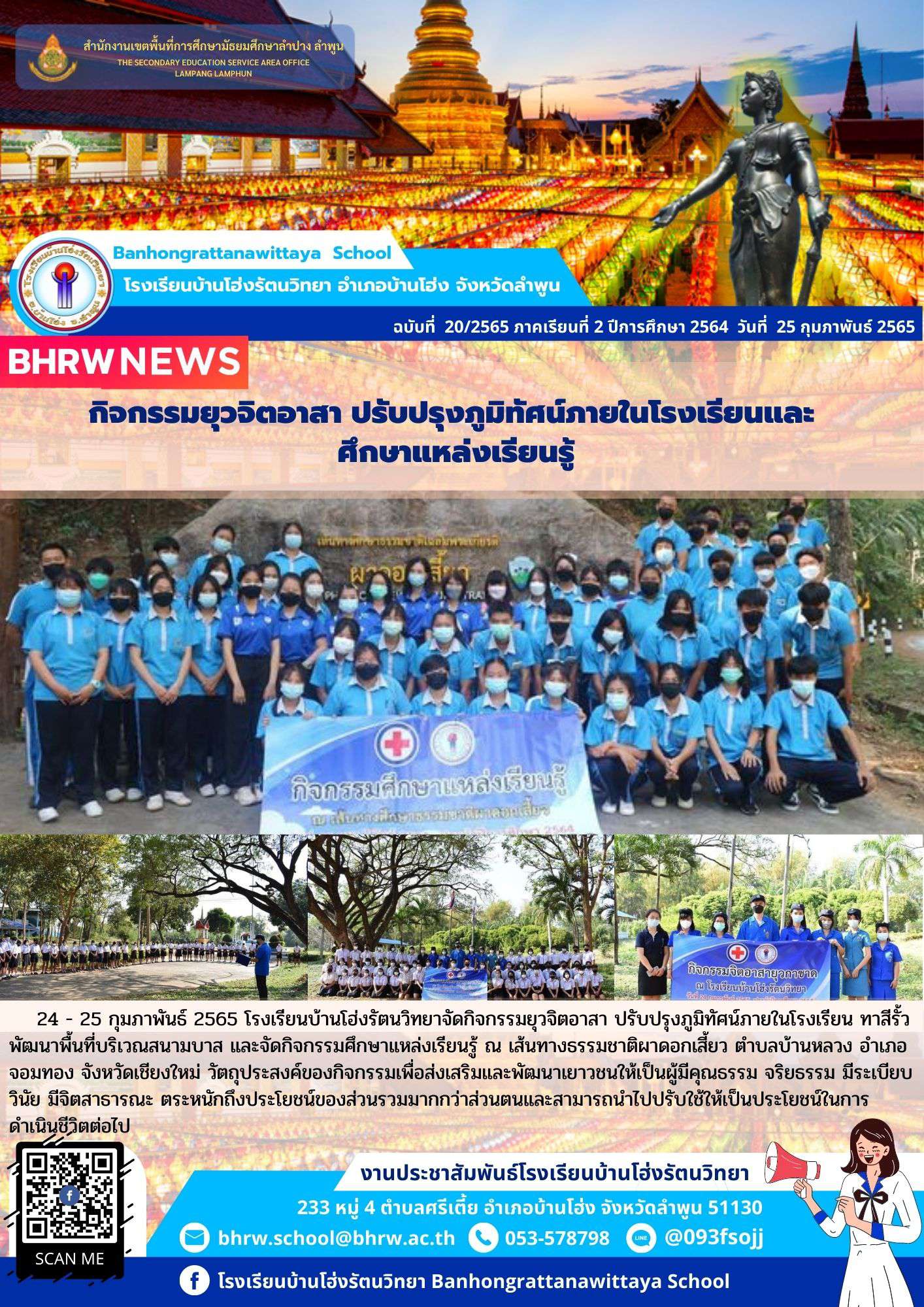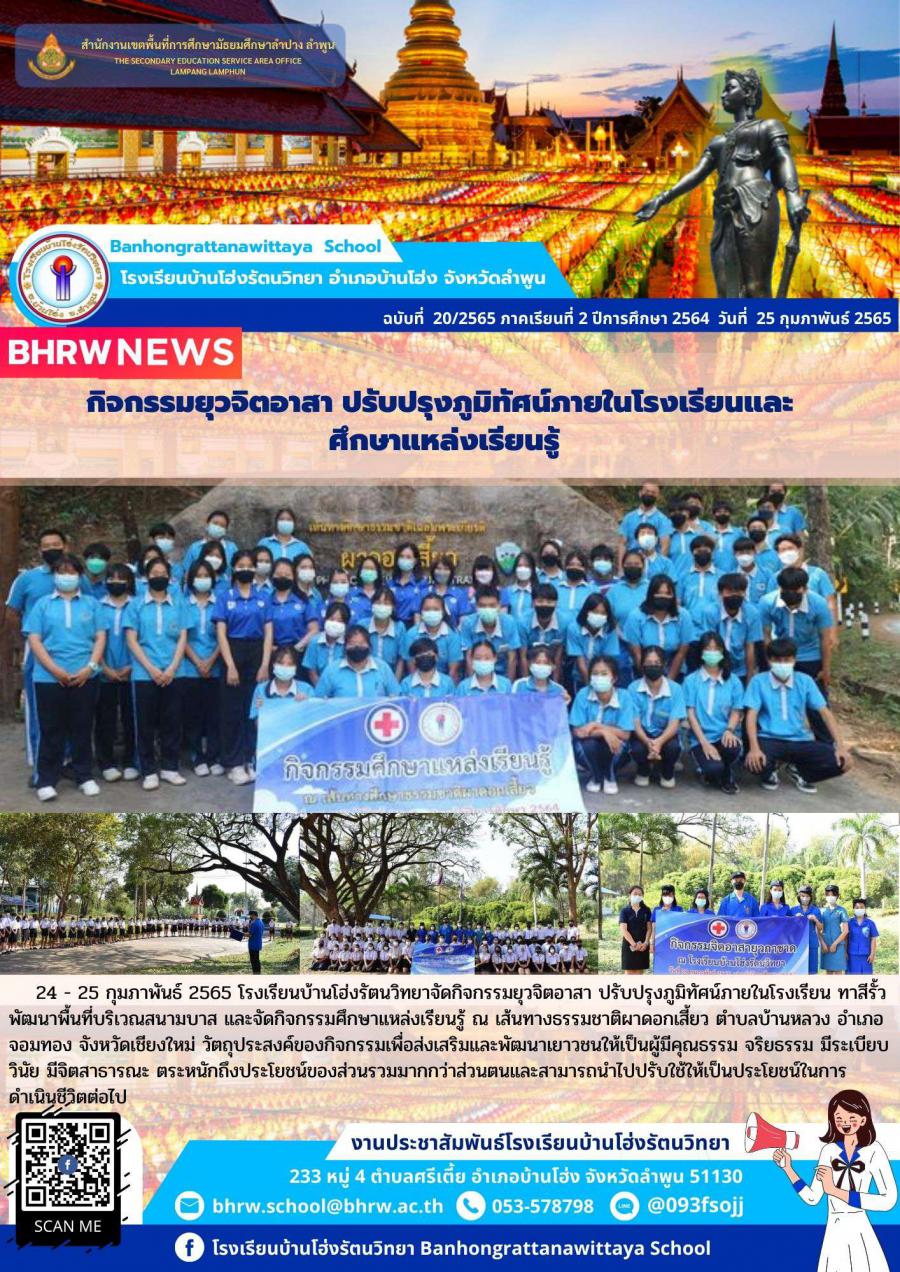 24 - 25 กุมภาพันธ์ 2565 โรงเรียนบ้านโฮ่งรัตนวิทยาจัดกิจกรรมยุวจิตอาสา ปรับปรุงภูมิทัศน์ภายในโรงเรียน ทาสีรั้ว พัฒนาพื้นที่บริเวณสนามบาส และจัดกิจกรรมศึกษาแหล่งเรียนรู้ ณ เส้นทางธรรมชาติผาดอกเสี้ยว ตำบลบ้านหลวง อำเภอจอมทอง จังหวัดเชียงใหม่ โดยประธานในพิธีเปิด นายจักรพงษ์ ใจปัญญา ผู้อำนวยการโรงเรียนบ้านโฮ่งรัตนวิทยา วัตถุประสงค์ของกิจกรรมเพื่อส่งเสริมและพัฒนาเยาวชนให้เป็นผู้มีคุณธรรม จริยธรรม มีระเบียบวินัย มีจิตสาธารณะ ตระหนักถึงประโยชน์ของส่วนรวมมากกว่าส่วนตนและสามารถนำไปปรับใช้ให้เป็นประโยชน์ในการดำเนินชีวิตต่อไป และเพื่อให้นักเรียนได้ศึกษาหาความรู้จากประสบการณ์โดยตรง