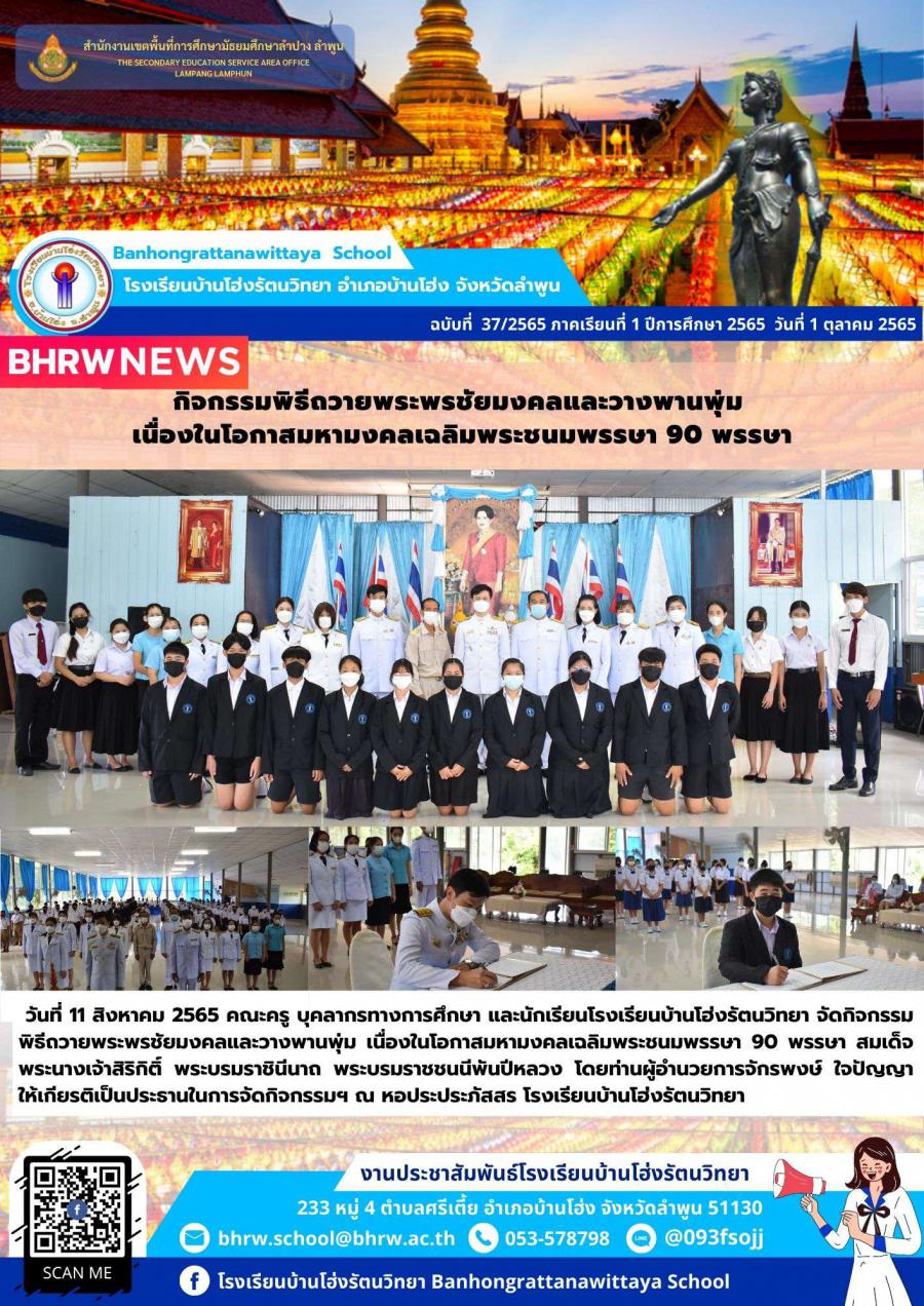 วันที่ 11 สิงหาคม 2565 คณะครู บุคลากรทางการศึกษา และนักเรียนโรงเรียนบ้านโฮ่งรัตนวิทยา จัดกิจกรรมพิธีถวายพระพรชัยมงคลและวางพานพุ่ม เนื่องในโอกาสมหามงคลเฉลิมพระชนมพรรษา 90 พรรษา สมเด็จพระนางเจ้าสิริกิติ์ พระบรมราชินีนาถ พระบรมราชชนนีพันปีหลวง โดยท่านผู้อำนวยการจักรพงษ์ ใจปัญญา ให้เกียรติเป็นประธานในการจัดกิจกรรมฯ ณ หอประประภัสสร โรงเรียนบ้านโฮ่งรัตนวิทยา จังหวัดลำพูน